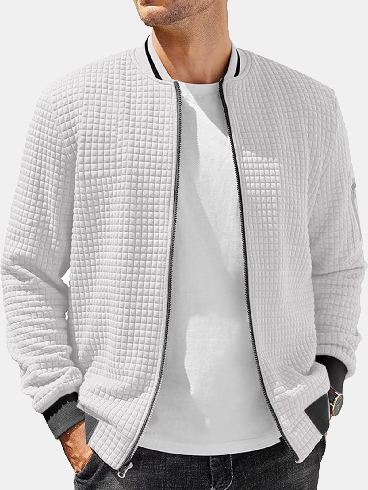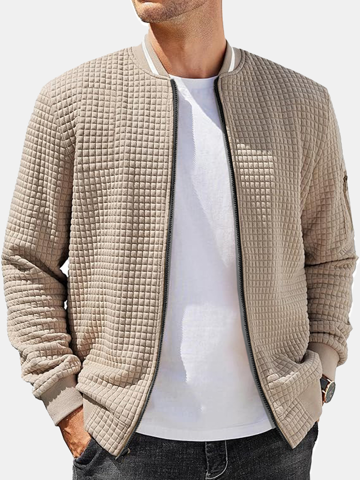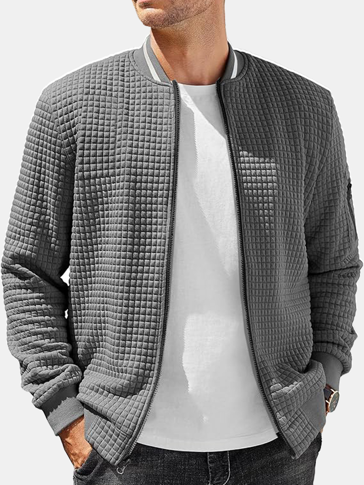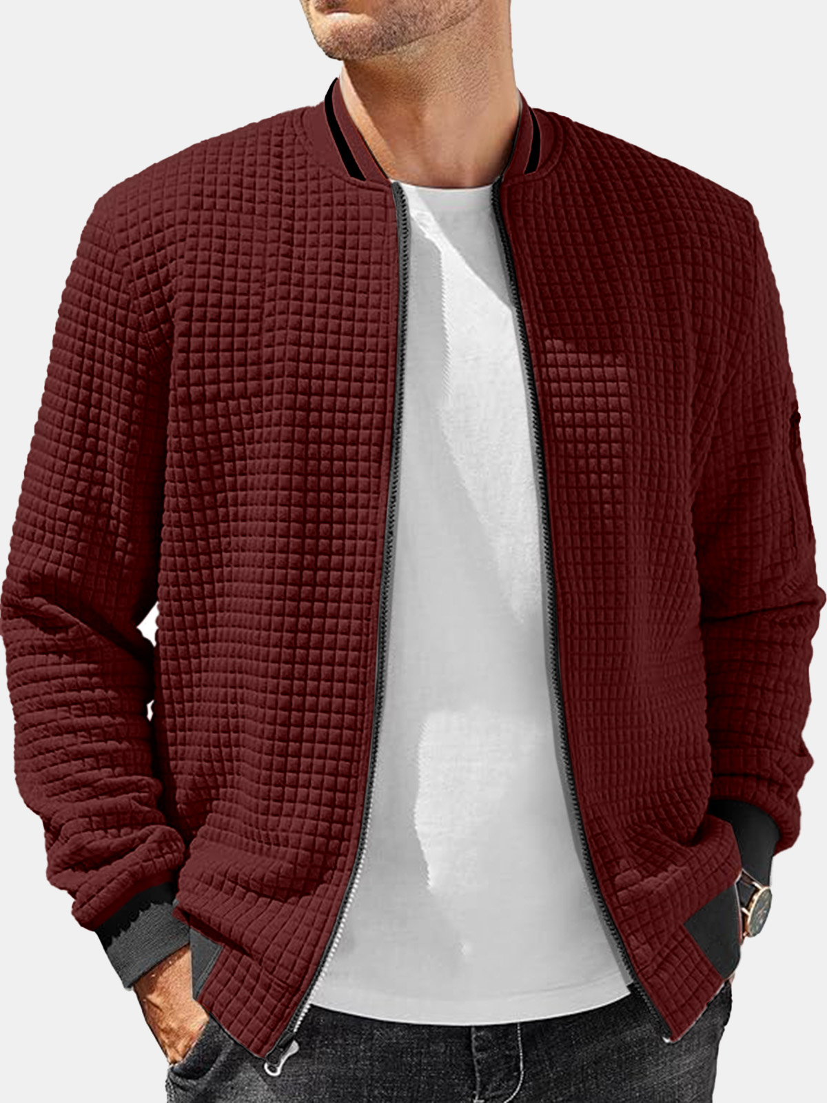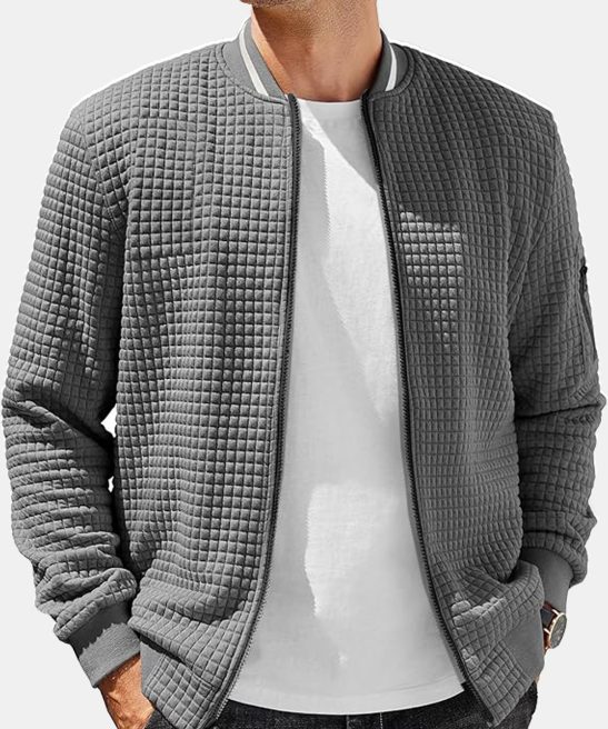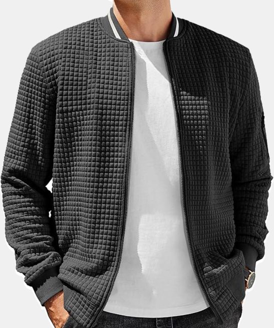 Men’s Casual Solid Color Comfortable Square Zipper Baseball Shirt Jacket