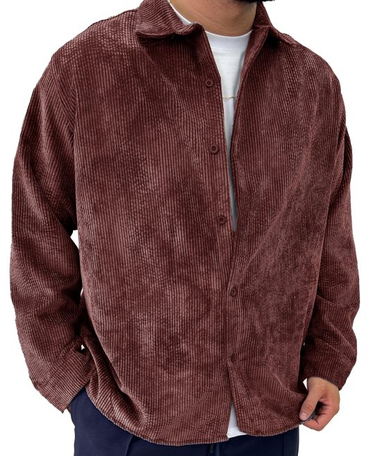 Men’s Fashion Vintage Corduroy Fabric Long Sleeve Shirt